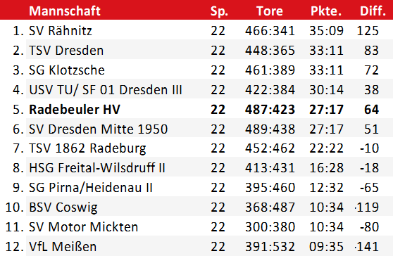 Tabelle Bezirksliga Sachsen-Mitte
