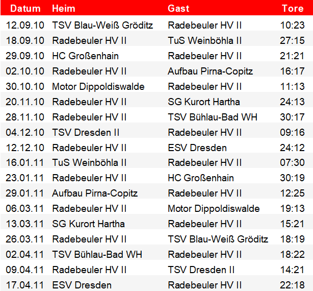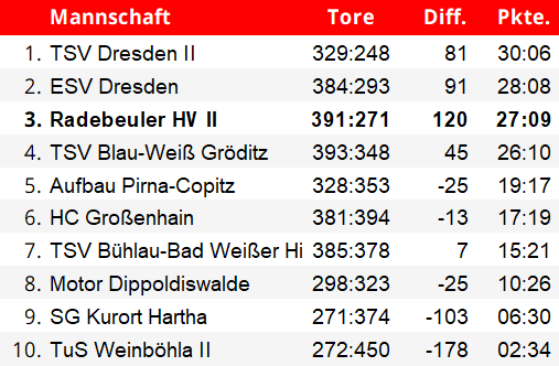 Tabelle Kreisliga Dresden