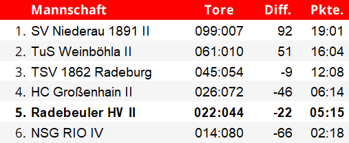 Kreisliga Elbe/Röder (Anfänger) - Tabelle
