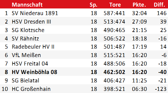 Tabelle Bezirksklasse Sachsen-Mitte